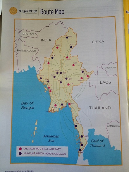 国営ミャンマー航空の路線地図は意図的なものかもしれない。